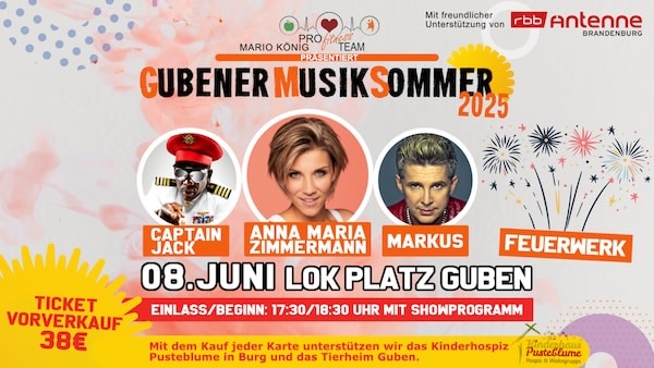NEU, WIR SIND JETZT OFFIZIELL EVENTIM PARTNER! ENTDECKE DIE BESTEN MUSIKVERANSTALTUNGEN DER REGION DU BIST VERANSTALTER?VERÖFFENTLICHE DEIN EVENT AUF KONZERTIX ★★★★★ WILDE OSTERN 19.APRIL, 25 GUBEN ZU DEN TICKETS HOT STAFF 2025 GUBEN ★★★★★ Gubener Musiksommer 08.Juni, 25 GUBEN ZU DEN TICKETS FOLGE UNS! WÖCHENTLICHE UPDATES EXKLUSIVER INHALT SPECIAL FEATURES